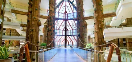 Il y a des hôtels qui font semblant d'être ailleurs, et d'autres qui s'y engagent vraiment. Le Holiday World Polynesia choisit résolument le second camp. Dès le hall, la végétation tropicale, les notes de bois sombre et les références polynésiennes installent une atmosphère qui tranche avec le béton balnéaire ordinaire de la Costa del Sol. L'air sent la mer, la piscine scintille à quelques mètres, et les 325 jours de soleil annuels promis par l'Andalousie font le reste. Benalmadena est un terrain de jeu idéal : les plages de Tajo de la Soga et de Carvajal sont à 350 mètres à pied, et Marbella, Fuengirola ou le port animé de Puerto Banús restent accessibles à la journée pour qui veut explorer.