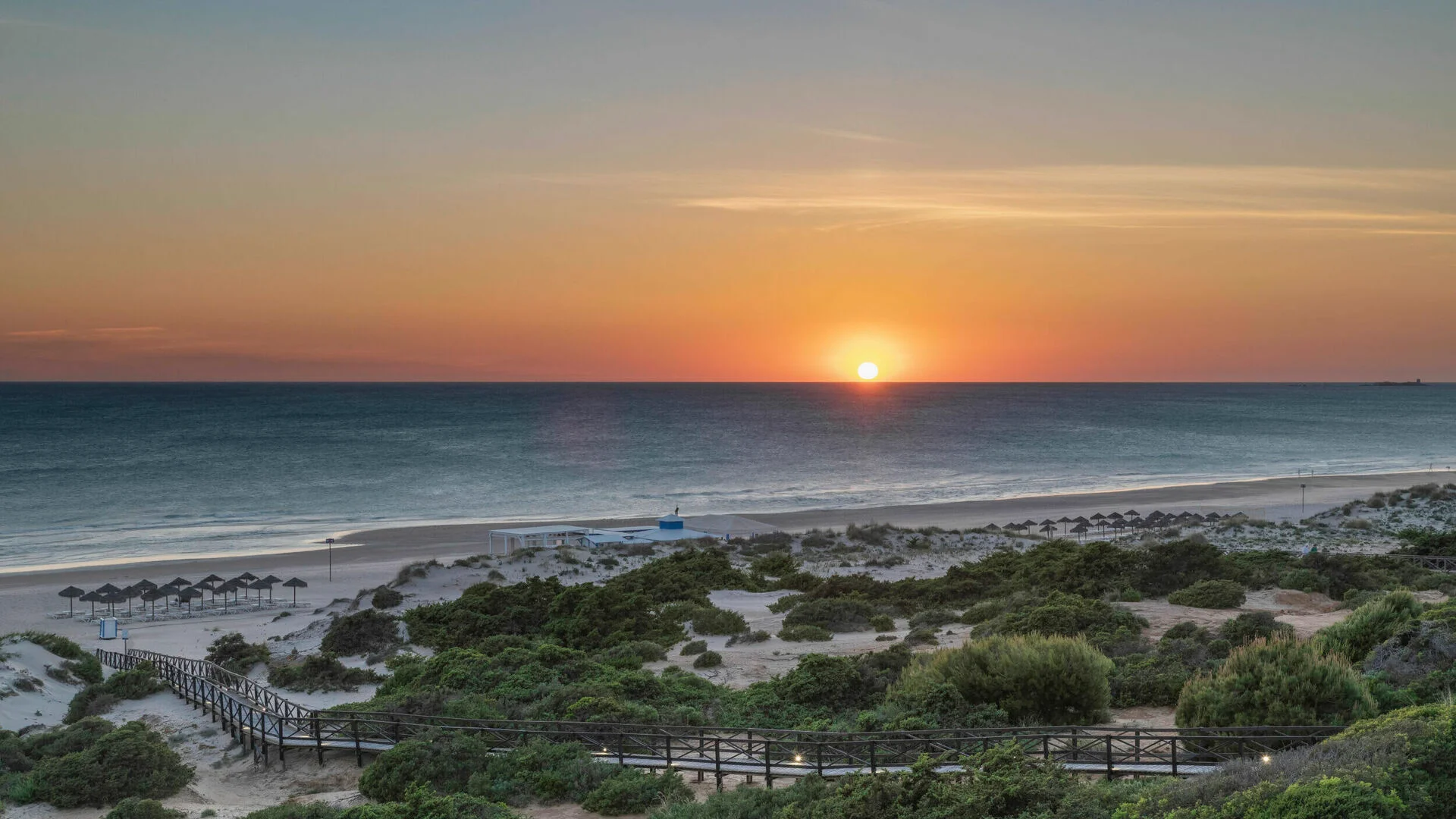 Il y a des hôtels que l'on reconnaît immédiatement à leur manière d'occuper le paysage. L'Iberostar Selection Andalucía Playa s'installe avec discrétion et élégance au bord de La Barrosa, une plage atlantique classée parmi les plus préservées d'Espagne, dont le sable blond et les dunes stabilisées par la végétation constituent un décor naturel presque irréel. On est à Chiclana de la Frontera, dans la province de Cadix, là où la lumière du soir tourne au cuivre et où l'air sent le sel mêlé au pin parasol. Ici, l'hôtel ne cherche pas à rivaliser avec la nature. Il s'y intègre.