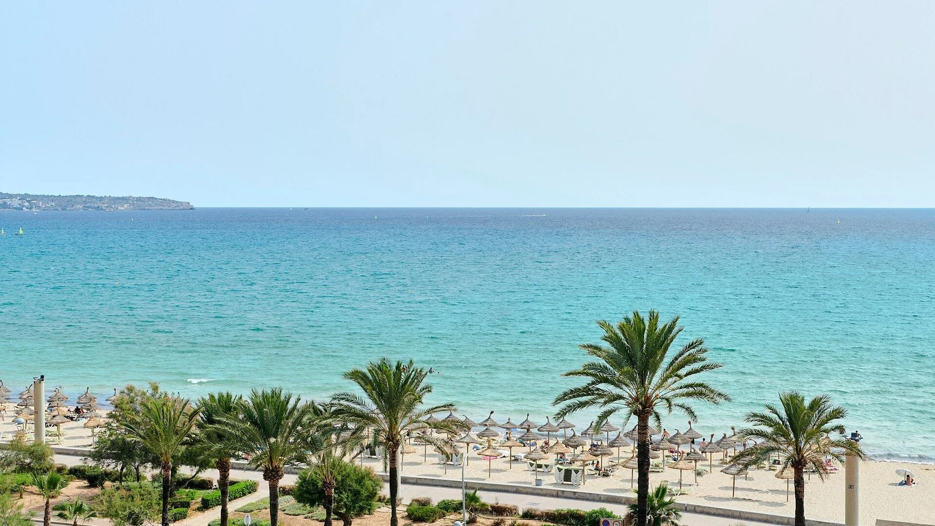 La plage de Palma s'étend directement devant l'hôtel, accessible à pied en quelques secondes. Le sable est fin, la mer calme dans la baie, et l'orientation de la côte permet de profiter du soleil une bonne partie de la journée. C'est un luxe simple mais fondamental : ne pas avoir à traverser une route ou marcher dix minutes pour atteindre l'eau.