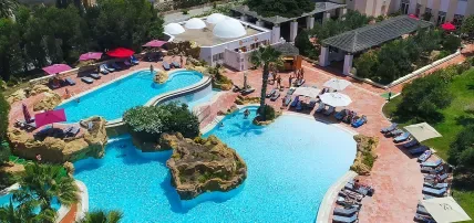 Il y a des hôtels qu'on sent dès le hall : le Medina Solaria & Thalasso fait partie de ceux-là. La décoration soignée, les lignes qui s'inspirent de l'architecture méditerranéenne et la lumière naturelle qui inonde les espaces communs donnent immédiatement le ton d'un séjour au-dessus de la moyenne. À Hammamet, à quelques minutes à peine du bord de mer, cet établissement 5 étoiles de 239 chambres réussit l'équilibre rare entre l'effervescence d'un resort animé et la vraie sensation de repos. Le tout-inclus ici n'est pas un compromis, c'est une promesse tenue.