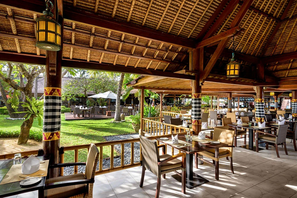 La formule all-inclusive du Prama transforme chaque repas en découverte culinaire. Cinq restaurants thématiques parcourent les saveurs du monde et de l'Indonésie. Le restaurant principal sert la cuisine internationale et indonésienne en buffet ou à la carte, offrant cette flexibilité appréciable des grands établissements. Le Tirta Restaurant, niché près de la piscine dans une ambiance décontractée, propose plats occidentaux et asiatiques toute la journée. Le Lada Restaurant invite à voyager dans la gastronomie traditionnelle balinaise avec des spécialités locales préparées à partir de produits frais, dans un cadre chaleureux et typique. Pour les amateurs de Méditerranée, le Basilico Italian Pavilion déploie sa carte italienne avec pizzas et pâtes, à savourer près du front de mer.