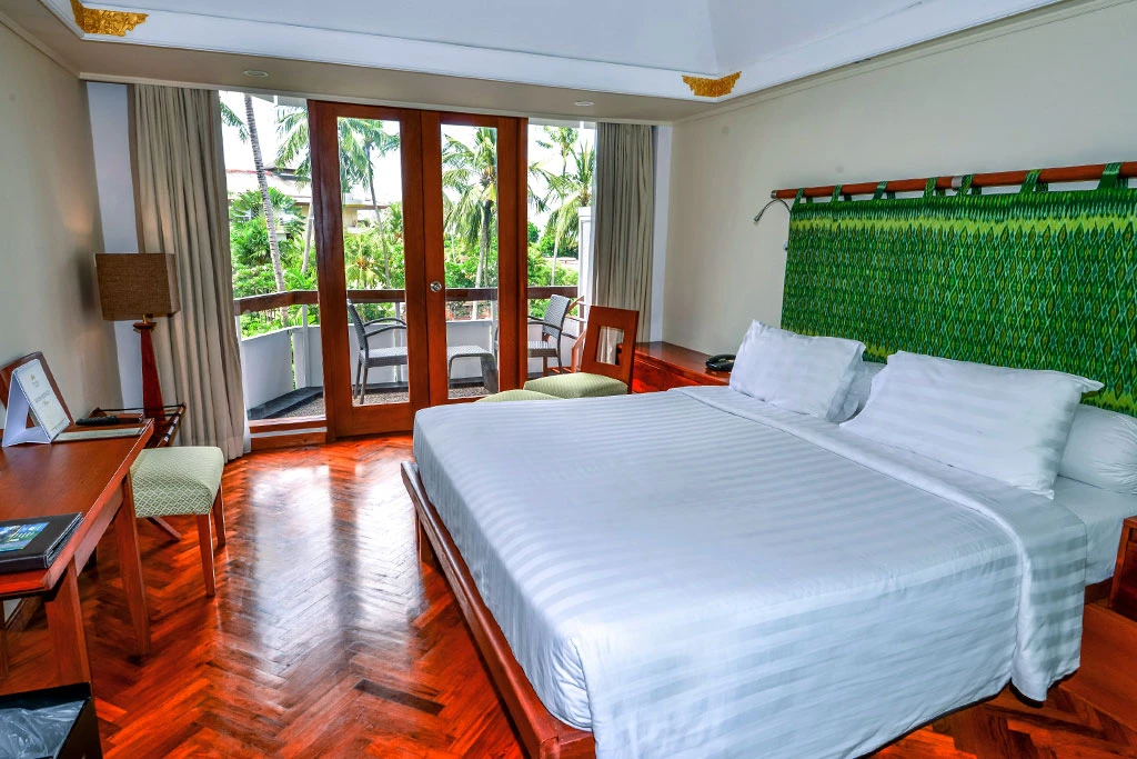 L'aéroport de Denpasar Ngurah Rai se situe à environ 13 kilomètres, ce qui signifie un transfert court et fluide vers votre havre de paix. Dès que vous franchissez les portes du Prama, une réception ouverte 24 heures sur 24 vous accueille avec cette chaleur typiquement balinaise. Les 428 chambres de l'hôtel sont réparties intelligemment au cœur de jardins tropicaux véritables, où chaque recoin respire la végétation luxuriante et les senteurs d'épices. Pas de bâtiments massifs ni d'atmosphère impersonnelle: l'architecture épouse le paysage naturel.
