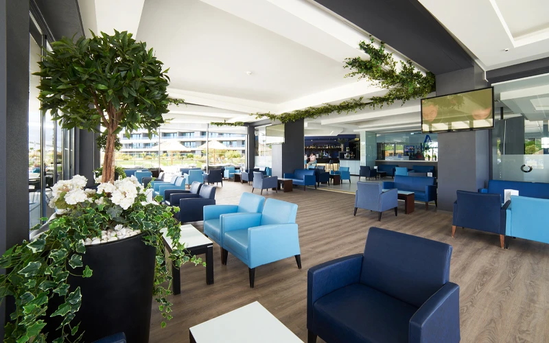 Voir l'offre chez Ovoyages →Il y a des adresses qui s'imposent d'emblée par leur cohérence. L'Alvor Baia en fait partie. Dès que l'on franchit l'entrée, le parti pris architectural saute aux yeux : lignes épurées, volumes généreux, lumière naturelle omniprésente. On est en Algarve, dans l'une des stations les plus animées de la côte portugaise, et l'hôtel joue pleinement la carte du club organisé sans jamais sacrifier l'espace ni le confort. L'équipe Top Clubs, francophone et européenne, donne immédiatement le ton : ici, tout est pensé pour que vous ne perdiez pas une heure de vacances à vous poser des questions logistiques.