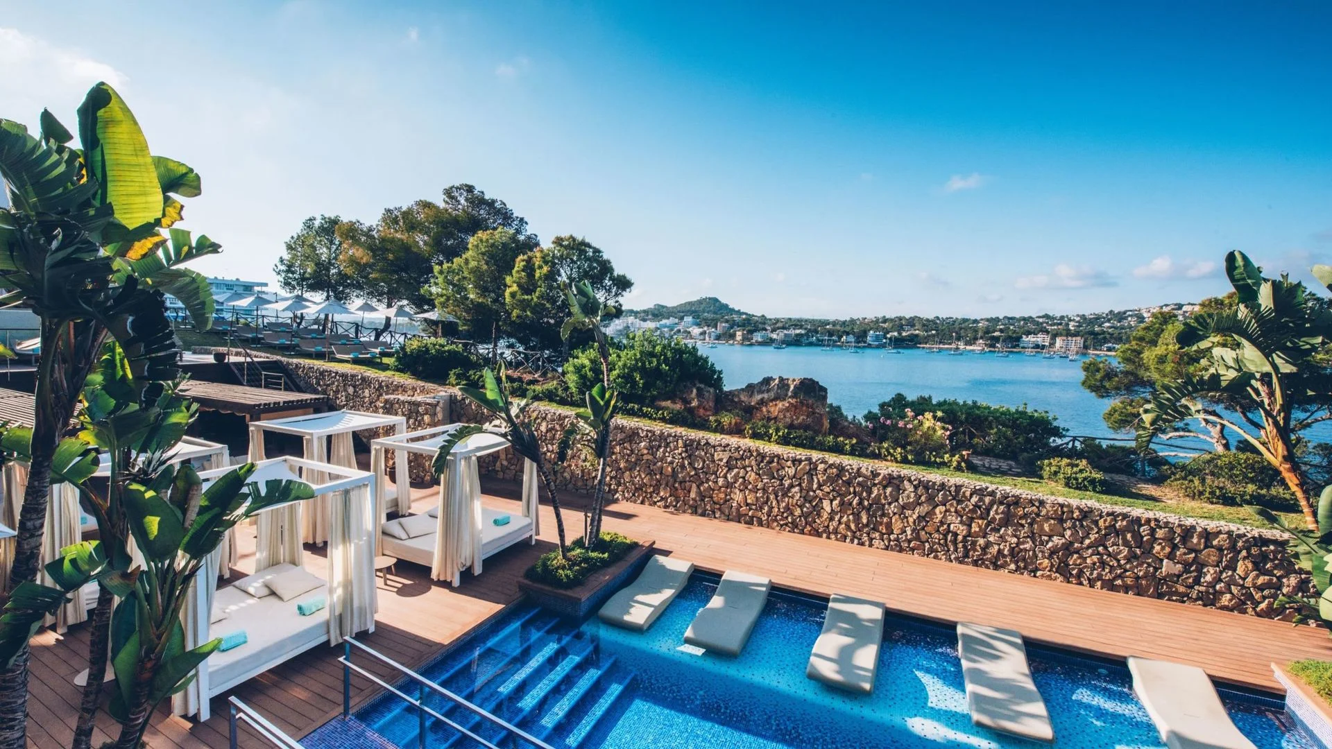 Le petit truc en plus : le jacuzzi extérieur de la terrasse de la Sea-View Junior Suite, face à la baie de Santa Ponsa au coucher du soleil. Ce moment précis, avec la lumière qui change sur l'eau et la chaleur de l'eau autour de vous, justifie à lui seul le choix de cet hôtel.